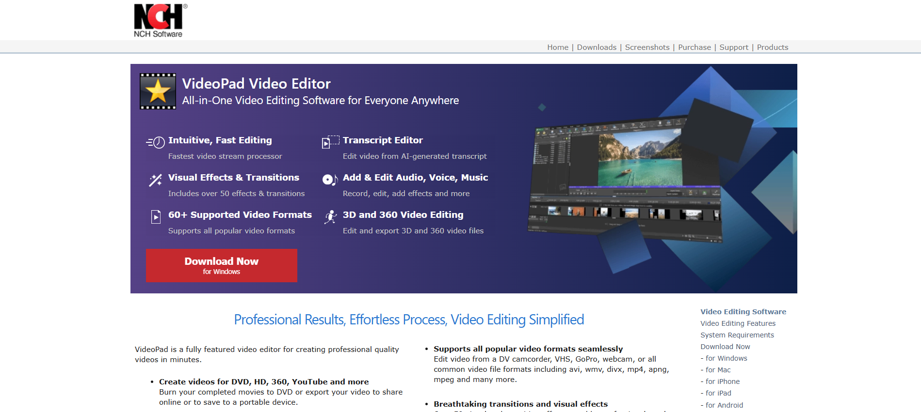 - VideoPad, made by NCH, is a user-friendly editor for Windows and Mac that focuses on fast starts and basic exports.